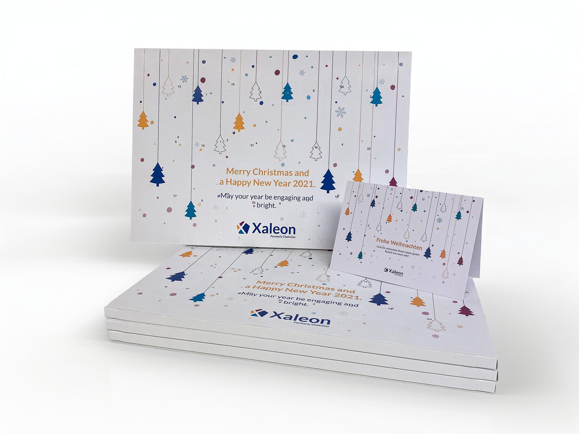 Design for a corporate advent calendar and holiday greeting card, tailored to reflect the Xaleon's* brand identity while bringing a warm, seasonal touch to client and partner communications.